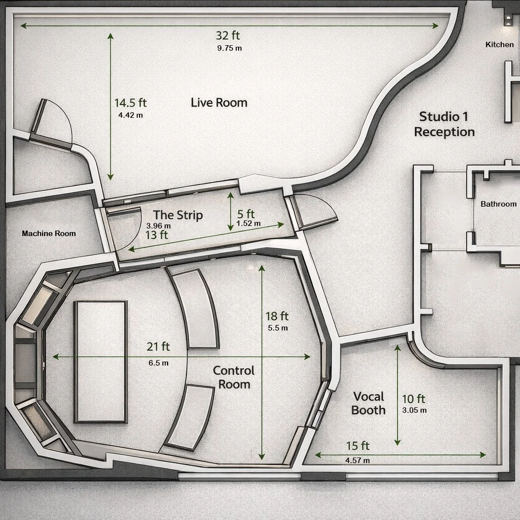 Studio 1 boasts three key rooms and 3 additional rooms with tie lines in each space, plus ample facilities to make your session a comfortable and productive experience.